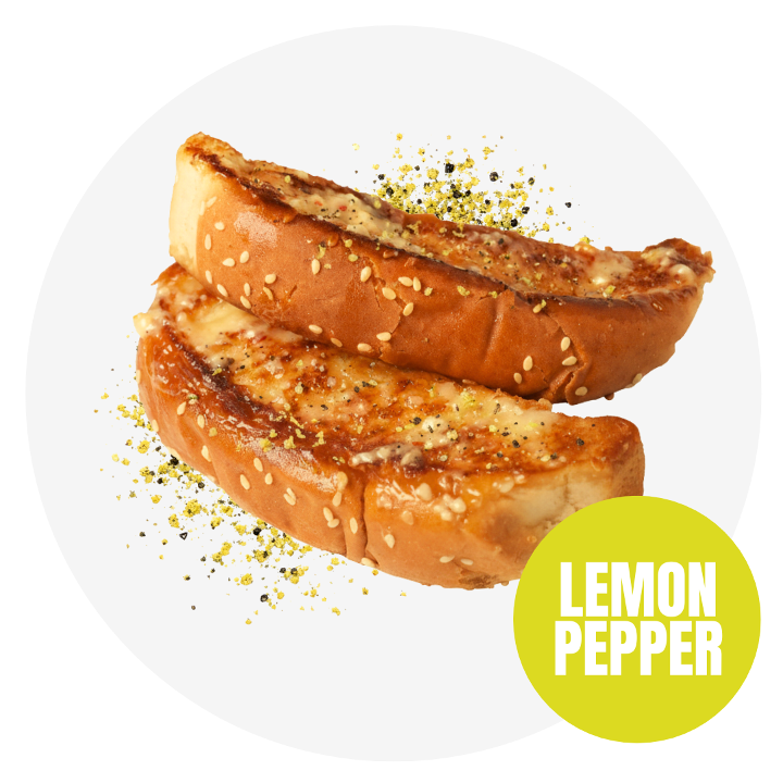 Soft, buttery toast brushed with garlic butter and topped with Lemon Pepper rub. Allergens: Wheat, Soy, Sesame