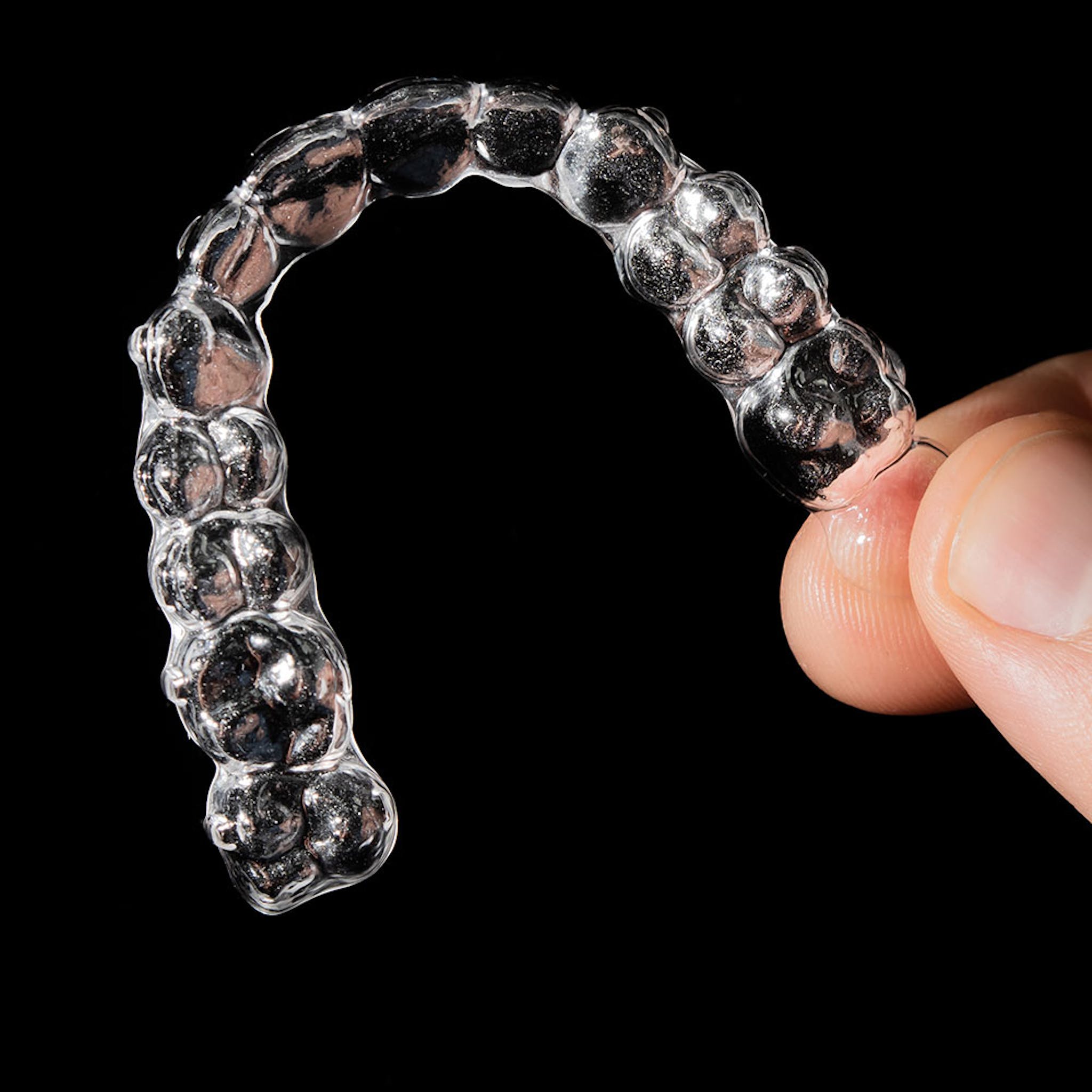 Rather than the brackets and wires of braces, Invisalign uses clear aligners made from durable plastic. These aligners apply controlled tension to shift teeth into a more ideal position. Patients wear aligners all day except for when they eat, drink beverages other than cold water, and when they brush and floss. That means the trays are in more than 20 hours a day. After wearing an aligner for two weeks, patients discard that tray and switch to the next one in the sequence. This is repeated over the course of several months until treatment is over.
